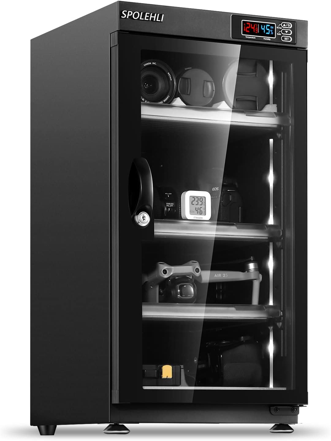 Armoire Sèche 35L Déshumidificateur Électronique pour Appareils Photo avec LED et Affichage Numérique